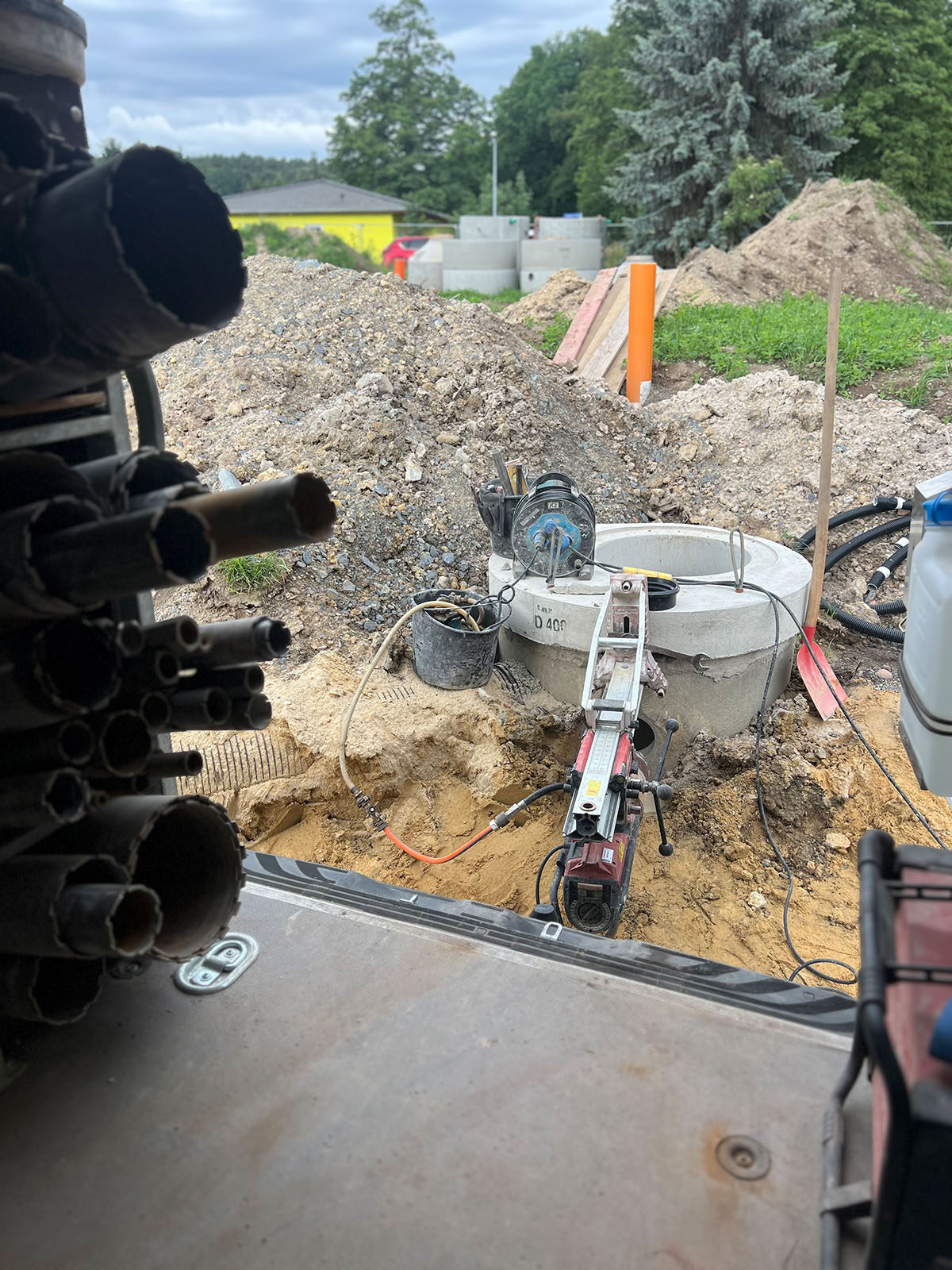 - Bohrungen für Hausanschlüsse: Wasser, Strom, Photovoltaik, Glasfaser