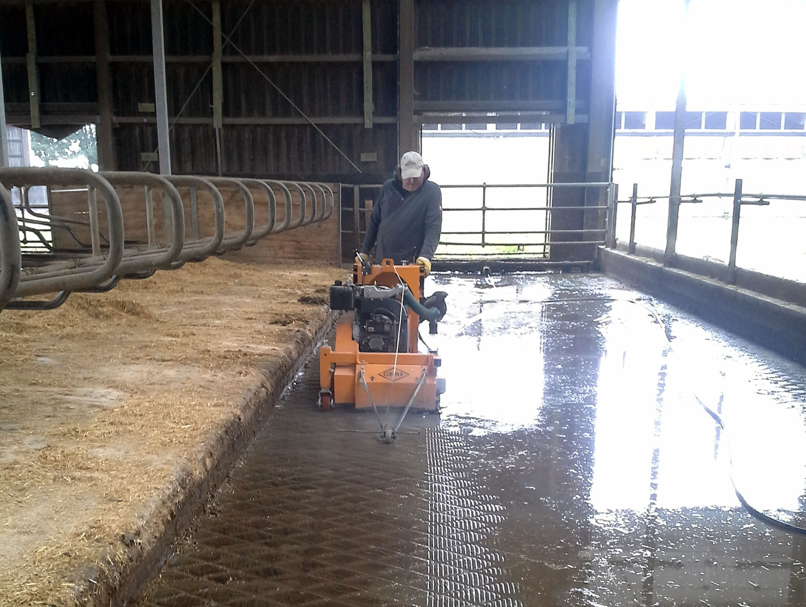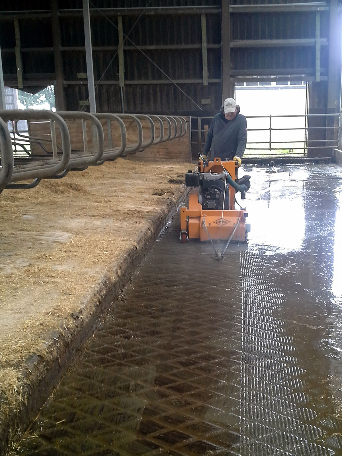 Glatte rutschige Flächen, wie zum Beispiel Kuhstallböden stellen für Mensch und Tier eine ernstzunehmende Gefahr dar. Durch unsere Oberflächenfräse können wir diese Gefahr vermindern, indem die Trittsicherheit durch parallel verlaufende Längsrillen hergestellt wird. Dabei wird in den jeweiligen Boden solch ein Rillenprofil eingefräst, welches bis zu 4 mm tief ist. Hier haben die Rillen sowie der Rillenabstand eine Breite von 10 mm.